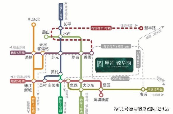 更为令人期待的是,未来还将有地铁二十号线与二十三号线(规划中)在此交汇。二十号线将连接广州东站与南沙,进一步强化区域与市中心及南部板块的联系。二十三号线则将串联起荔湾、白云、黄埔、增城四区,形成一条新的东西向交通大通道。这些规划线路的落地,将进一步提升星河臻华府的交通能级,使其成为真正的交通枢纽型物业。
