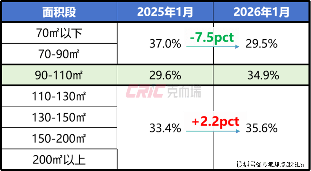 主流产品未发生根本性变化,但有一个现象值得关注,以主流产品90-110㎡为界,90㎡以下、110㎡以上占比呈现两极分化:90㎡以下刚需产品占比份额在缩小,同比减少7.5个百分点,占比不足三成;110㎡以上的市场份额在扩大,同比增加2.2个百分点,总占比35.6%反超90㎡以下刚需产品,成为市场新的支撑点。