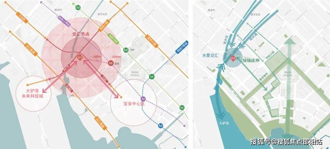 基地坐落于宝安中心区,地理位置优越,位于主次干道交汇节点,是连接宝安中心区和大铲湾未来科技城重要的城市节点。项目在这里扮演着公共水体与私密绿化之间过渡的角色。