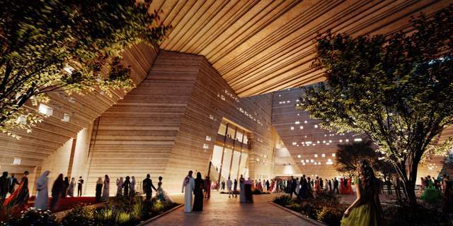 建筑由挪威Snøhetta携手利雅得本土的Syn Architects合作设计,以当代视角重新诠释纳吉迪(Najdi)建筑传统,创造出极具地域特色的文化地标。
