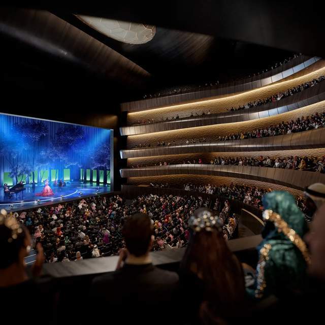 德拉伊耶皇家歌剧院是沙特“2030愿景”下最具雄心的文化项目之一,坐落于首都利雅得西北部,毗邻世界文化遗产阿图赖夫古城遗址。项目总建面约13万平米,涵盖歌剧院、五星级酒店及高级住宅等。计划2028年竣工,它将成为沙特首座世界级歌剧院,推动该国文化多元化转型。