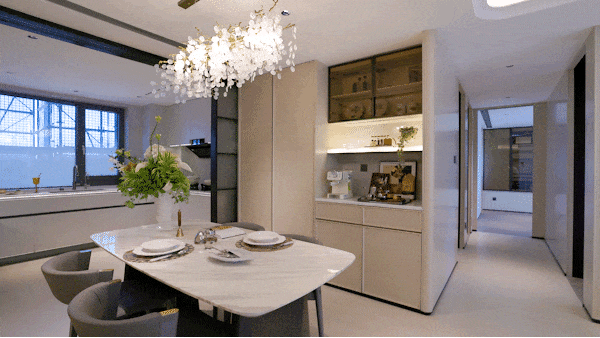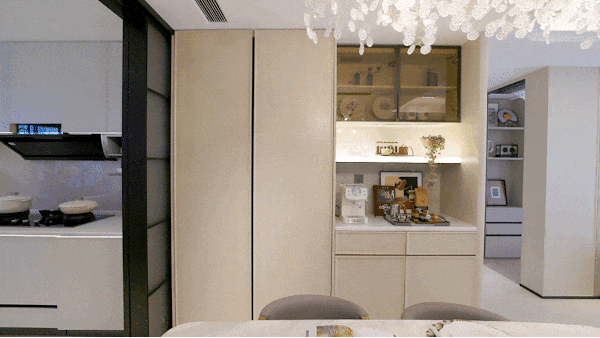 延伸出的早C晚A魔法空间,藏着都市人的生活仪式感:清晨,胶囊咖啡机吐出第一缕醇香,骨瓷杯沿的奶沫画出心形拉花;入夜,威士忌酒柜的柔光亮起,水晶杯折射出琥珀色的微醺时刻!